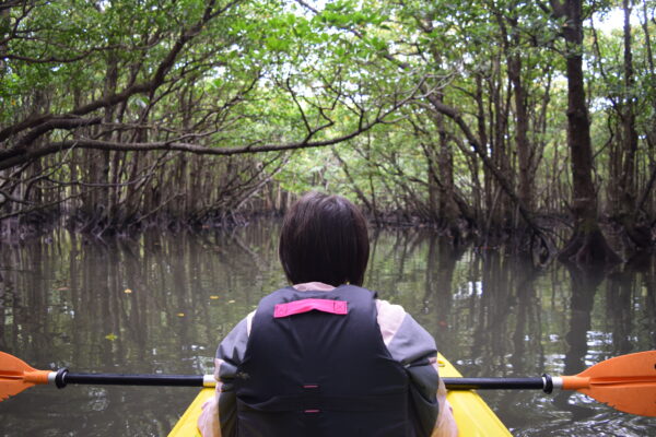 マングローブのトンネルをくぐり、潮の満ち引きを感じながらのんびりと漕いだカヌー。
